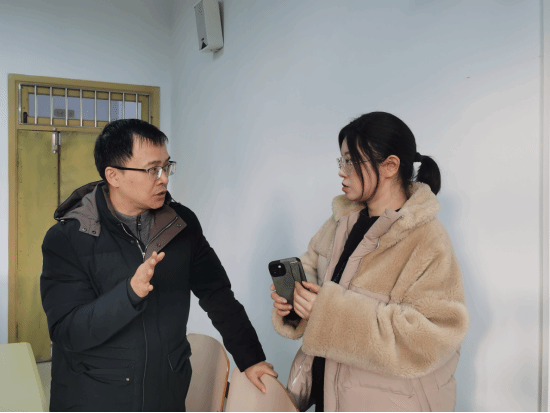 图1:陈跃教授(右)与侯典芬老师(左)现场指导交流