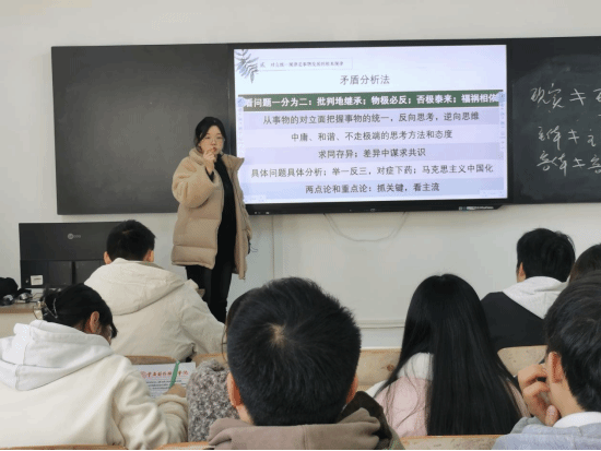 在本次听课活动中,两位专家特别关注了侯典芬和兰征老师主讲的《马克思主义基本原理》课程。陈跃教授认真聆听了课程内容,并在课后与侯典芬教师进行了深入的交流和讨论。他对于课程内容的深度和广度给予了高度评价,并就如何将课程思政融入等方面提出了宝贵的意见和建议。吴坤埔教授参与了兰征老师听课活动后,并对课程的教学方法和效果进行了细致的分析。他强调,思政课程不仅要传授知识,更要学生课堂参与性,以讨论互动活动,增加学生共鸣。