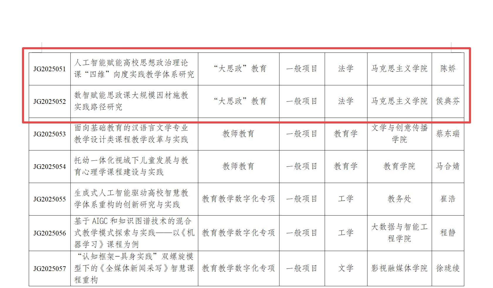 2025年校级教育教学改革研究项目申报中,我院
