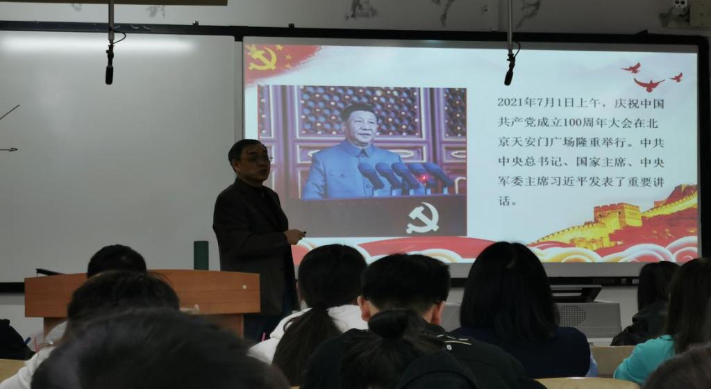 (图为牟勇副院长在班级宣讲习近平总书记“七一”精神)