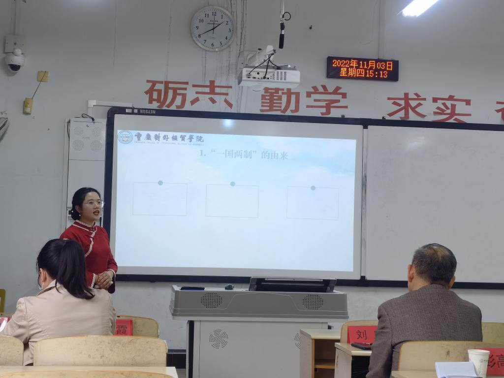 为深入学习贯彻党的二十大会议精神,认真贯彻习近平总书记关于教育的重要论述特别是在学校思想政治理论课教师座谈会上的重要讲话精神,2022年11月3日下午14:30,太阳集团tyc9728在合川A校区1306教室成功举行了“思政课教师教学能力大赛”。此次大赛由教务处副处长彭高中、太阳集团tyc9728党支部书记李亚军、王顺达教授、刘康教授、王志凤副教授、彭灵赟老师、周红霞老师担任评委,王萌老师担任主持。
