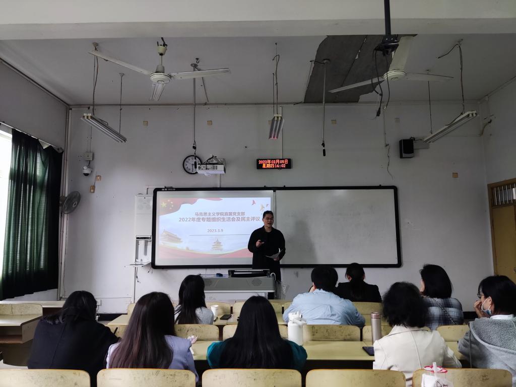 根据《中共ok138cn太阳集团委员会关于召开2022年度基层党组织组织生活会和开展民主评议党员的通知》要求,太阳集团tyc9728直属党支部于2023年3月9日下午2点在第一教学楼303召开党支部会议,开展2022年度党员专题组织生活会和民主评议工作。全体党员参加会议,会议由党支部书记李亚军主持。