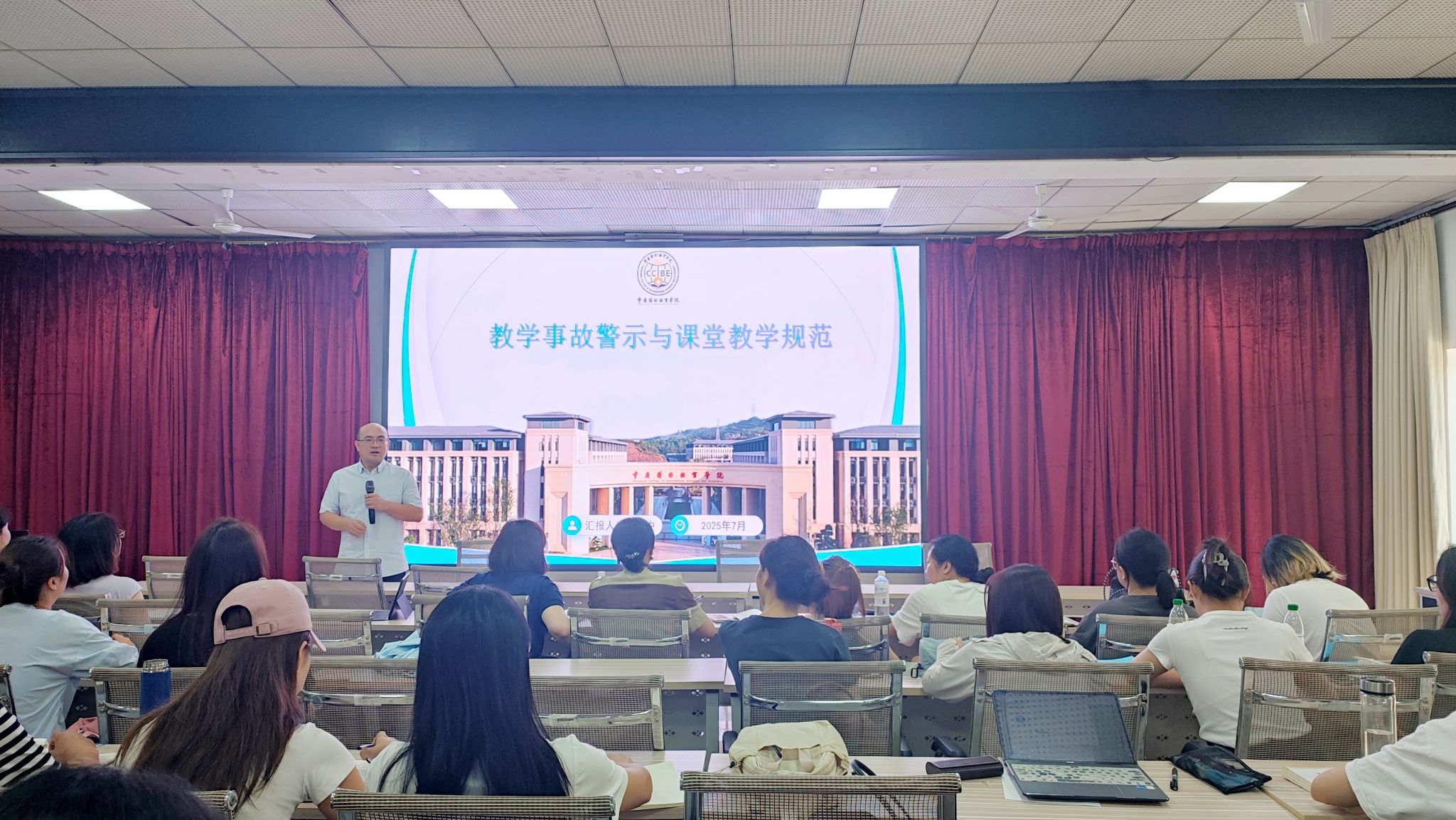 为进一步增强教师的责任意识,严肃教学纪律,规范教学管理,提升教学质量,7月15日上午,ok138cn太阳集团教务处副处长彭高中在A校区图书馆行知大讲堂为我院暑期培训营的参训教师作专题培训,系统讲解了学校关于教学责任事故认定及课堂教学规范的相关文件规定。