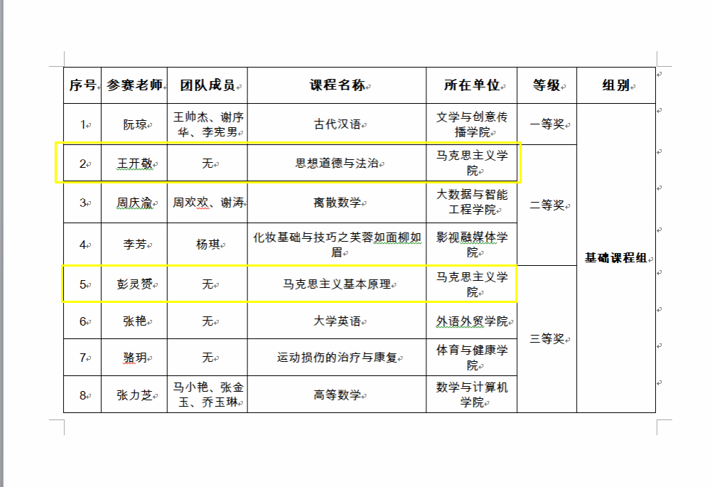 近日,我院王开敬、彭灵赟老师参加学校2023年教师教学创新大赛取得优异成绩,分别获得二等奖和三等奖,祝贺她们。希望全院教师能够以她们为榜样,潜心开展教学研究,重视教学技能与教学改革创新,赓续奋斗,再创佳绩。