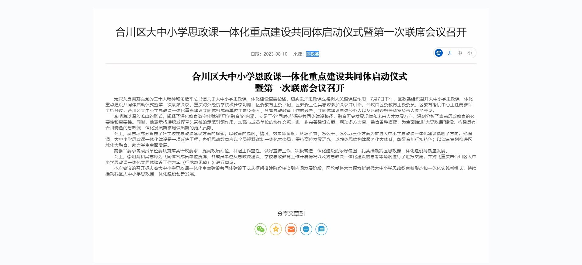 合川区大中小学思政课一体化重点建设共同体启动仪式暨第一次联席会议召开